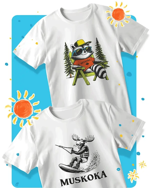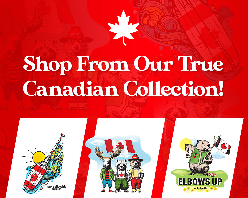 Be on trend with our stunning collecion of quirky graphic tees that change colour in sunlight! also, we're Made-in-Muskoka :)