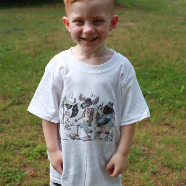 From tranquil lakes and majestic pine trees to iconic wildlife and canoes, watch as the detailed prints reveal hidden colours when exposed to the sun. Whether you're lounging by the dock, hiking through the woods, or enjoying a campfire, these shirts bring a touch of